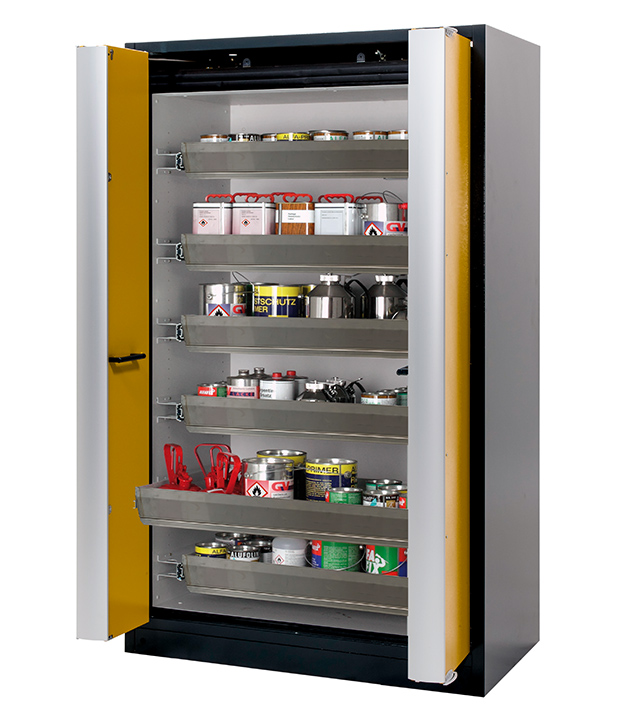 Bitte beachten Sie die jeweils gültigen, nationalen Regeln und Vorschriften zur Lagerung von Gefahrstoffen bei der Konfiguration Ihres Produktes. Sollten Sie unsicher sein, helfen Ihnen die asecos Experten gerne weiter.