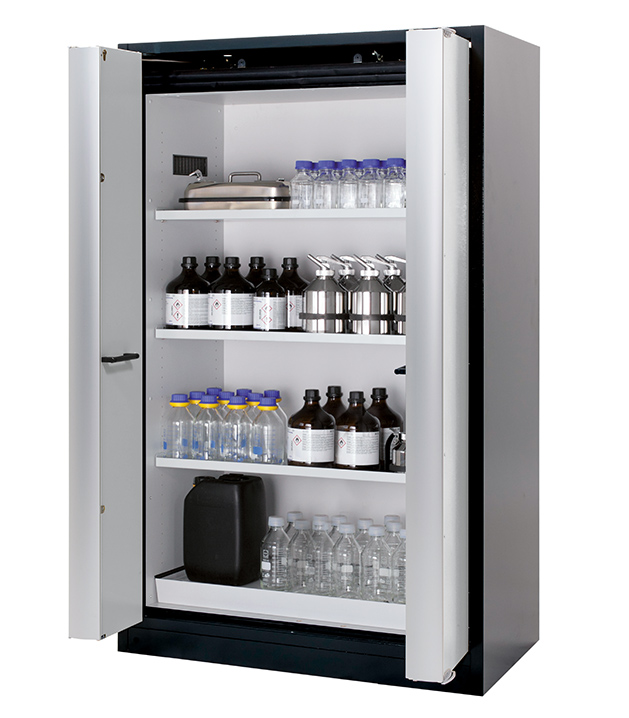 Bitte beachten Sie die jeweils gültigen, nationalen Regeln und Vorschriften zur Lagerung von Gefahrstoffen bei der Konfiguration Ihres Produktes. Sollten Sie unsicher sein, helfen Ihnen die asecos Experten gerne weiter.