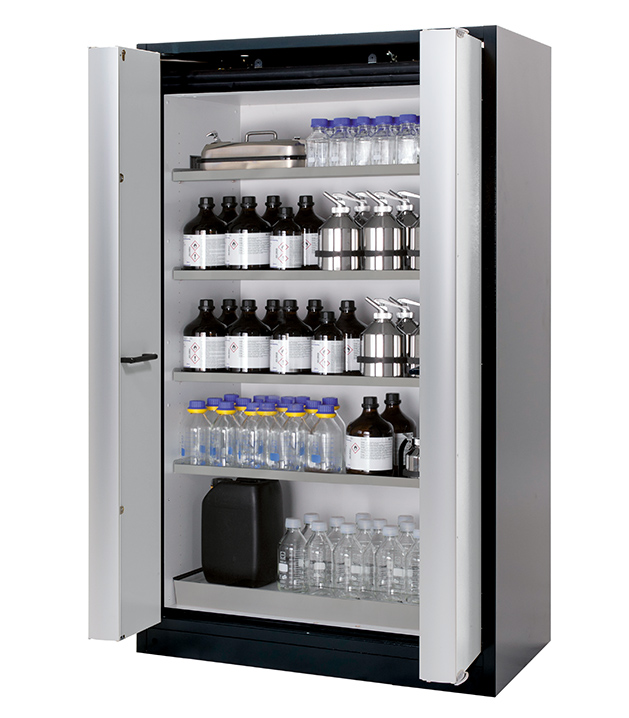 Bitte beachten Sie die jeweils gültigen, nationalen Regeln und Vorschriften zur Lagerung von Gefahrstoffen bei der Konfiguration Ihres Produktes. Sollten Sie unsicher sein, helfen Ihnen die asecos Experten gerne weiter.