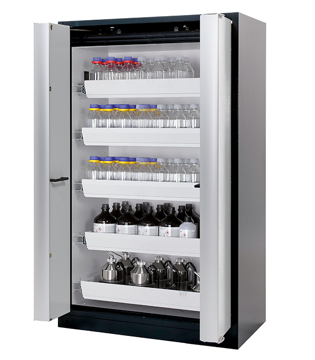 Bitte beachten Sie die jeweils gültigen, nationalen Regeln und Vorschriften zur Lagerung von Gefahrstoffen bei der Konfiguration Ihres Produktes. Sollten Sie unsicher sein, helfen Ihnen die asecos Experten gerne weiter.