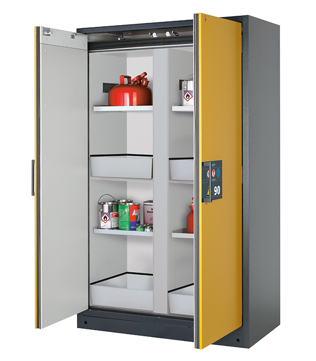 Bitte beachten Sie die jeweils gültigen, nationalen Regeln und Vorschriften zur Lagerung von Gefahrstoffen bei der Konfiguration Ihres Produktes. Sollten Sie unsicher sein, helfen Ihnen die asecos Experten gerne weiter.