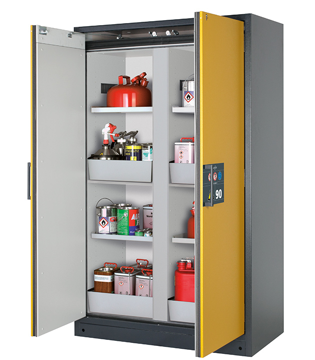Bitte beachten Sie die jeweils gültigen, nationalen Regeln und Vorschriften zur Lagerung von Gefahrstoffen bei der Konfiguration Ihres Produktes. Sollten Sie unsicher sein, helfen Ihnen die asecos Experten gerne weiter.