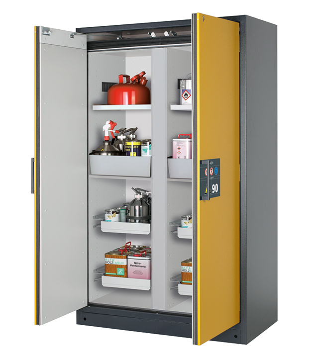 Bitte beachten Sie die jeweils gültigen, nationalen Regeln und Vorschriften zur Lagerung von Gefahrstoffen bei der Konfiguration Ihres Produktes. Sollten Sie unsicher sein, helfen Ihnen die asecos Experten gerne weiter.