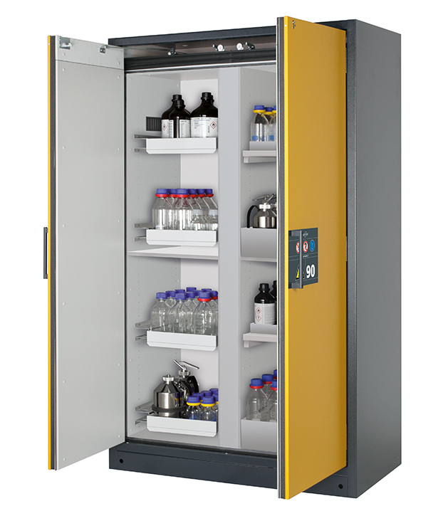 Bitte beachten Sie die jeweils gültigen, nationalen Regeln und Vorschriften zur Lagerung von Gefahrstoffen bei der Konfiguration Ihres Produktes. Sollten Sie unsicher sein, helfen Ihnen die asecos Experten gerne weiter.