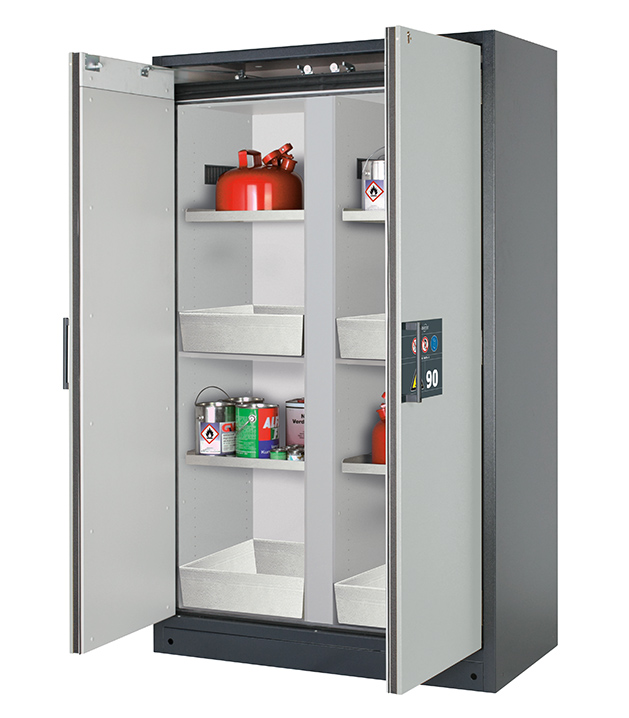 Bitte beachten Sie die jeweils gültigen, nationalen Regeln und Vorschriften zur Lagerung von Gefahrstoffen bei der Konfiguration Ihres Produktes. Sollten Sie unsicher sein, helfen Ihnen die asecos Experten gerne weiter.
