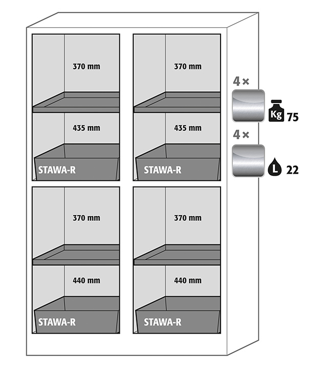- Alles in einem: verschiedene Abteile (mehrfache Teilung) erlauben die Lagerung unterschiedlicher Gefahrstoffe in einem Schrank