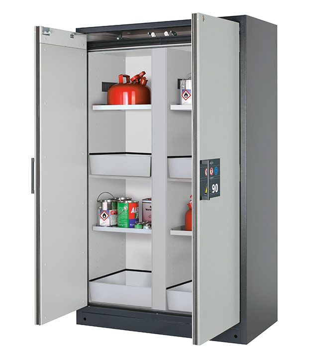 Bitte beachten Sie die jeweils gültigen, nationalen Regeln und Vorschriften zur Lagerung von Gefahrstoffen bei der Konfiguration Ihres Produktes. Sollten Sie unsicher sein, helfen Ihnen die asecos Experten gerne weiter.