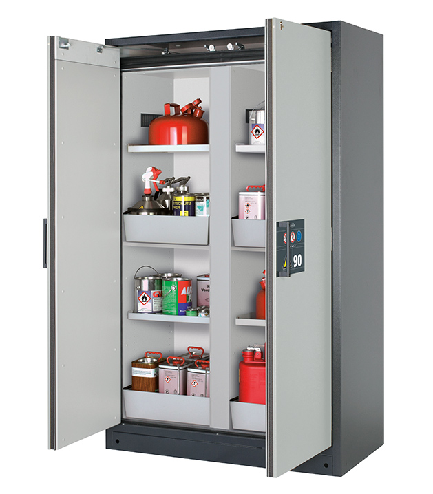 Bitte beachten Sie die jeweils gültigen, nationalen Regeln und Vorschriften zur Lagerung von Gefahrstoffen bei der Konfiguration Ihres Produktes. Sollten Sie unsicher sein, helfen Ihnen die asecos Experten gerne weiter.