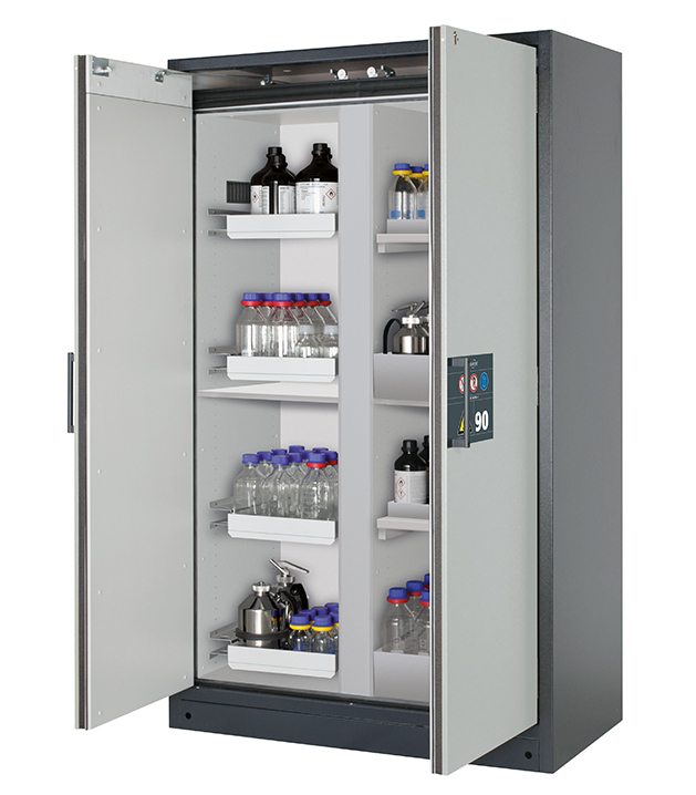 Bitte beachten Sie die jeweils gültigen, nationalen Regeln und Vorschriften zur Lagerung von Gefahrstoffen bei der Konfiguration Ihres Produktes. Sollten Sie unsicher sein, helfen Ihnen die asecos Experten gerne weiter.