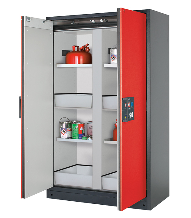 Bitte beachten Sie die jeweils gültigen, nationalen Regeln und Vorschriften zur Lagerung von Gefahrstoffen bei der Konfiguration Ihres Produktes. Sollten Sie unsicher sein, helfen Ihnen die asecos Experten gerne weiter.