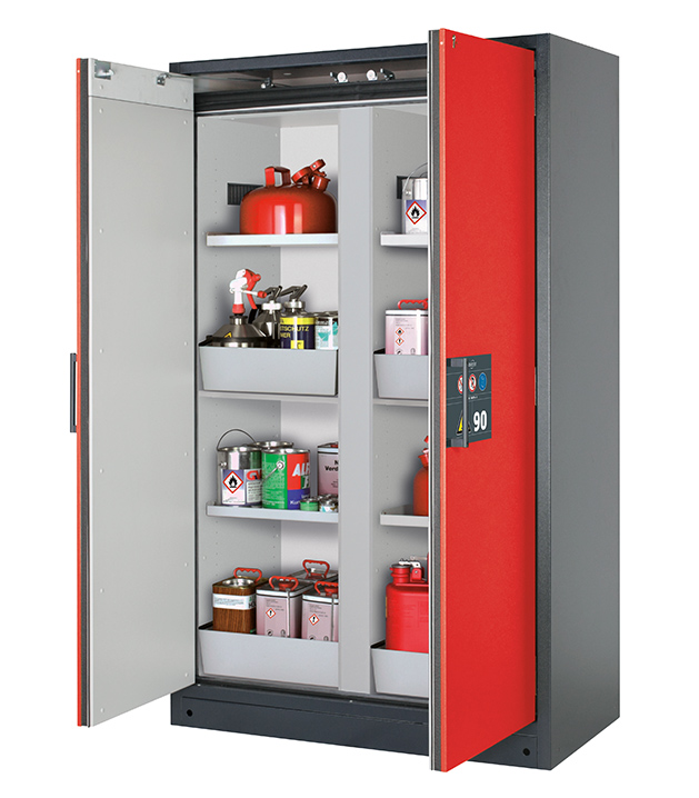 Bitte beachten Sie die jeweils gültigen, nationalen Regeln und Vorschriften zur Lagerung von Gefahrstoffen bei der Konfiguration Ihres Produktes. Sollten Sie unsicher sein, helfen Ihnen die asecos Experten gerne weiter.