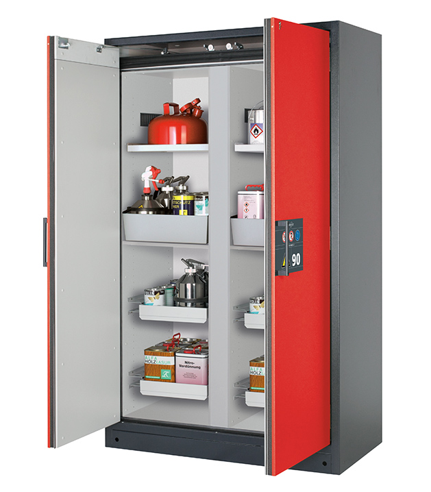 Bitte beachten Sie die jeweils gültigen, nationalen Regeln und Vorschriften zur Lagerung von Gefahrstoffen bei der Konfiguration Ihres Produktes. Sollten Sie unsicher sein, helfen Ihnen die asecos Experten gerne weiter.