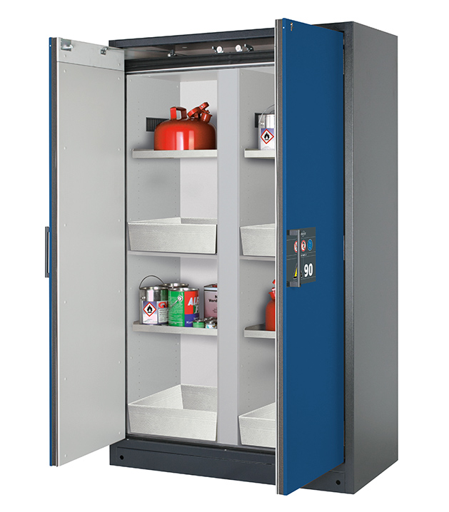 Bitte beachten Sie die jeweils gültigen, nationalen Regeln und Vorschriften zur Lagerung von Gefahrstoffen bei der Konfiguration Ihres Produktes. Sollten Sie unsicher sein, helfen Ihnen die asecos Experten gerne weiter.