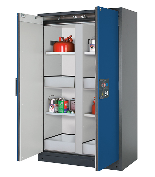 Bitte beachten Sie die jeweils gültigen, nationalen Regeln und Vorschriften zur Lagerung von Gefahrstoffen bei der Konfiguration Ihres Produktes. Sollten Sie unsicher sein, helfen Ihnen die asecos Experten gerne weiter.