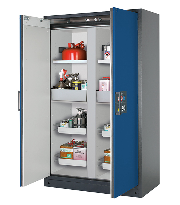 Bitte beachten Sie die jeweils gültigen, nationalen Regeln und Vorschriften zur Lagerung von Gefahrstoffen bei der Konfiguration Ihres Produktes. Sollten Sie unsicher sein, helfen Ihnen die asecos Experten gerne weiter.