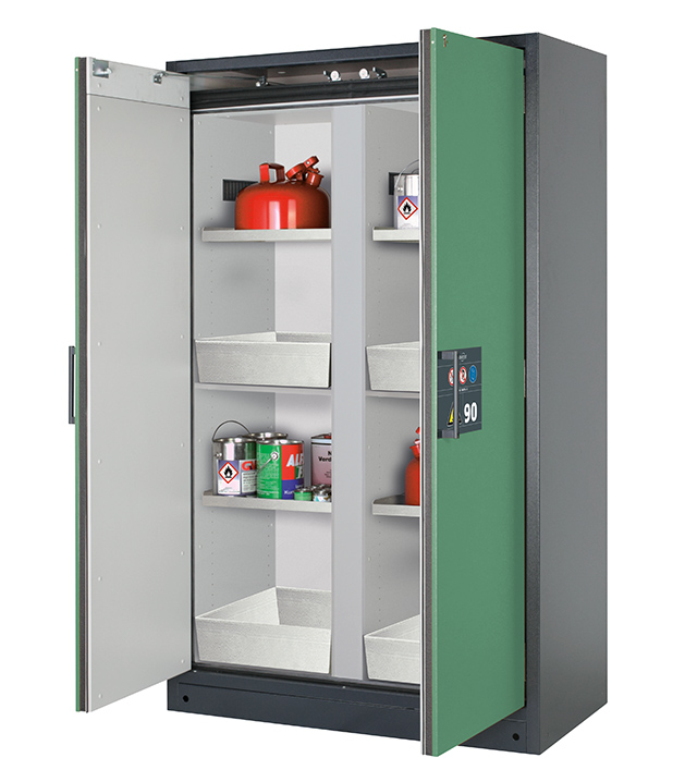 Bitte beachten Sie die jeweils gültigen, nationalen Regeln und Vorschriften zur Lagerung von Gefahrstoffen bei der Konfiguration Ihres Produktes. Sollten Sie unsicher sein, helfen Ihnen die asecos Experten gerne weiter.