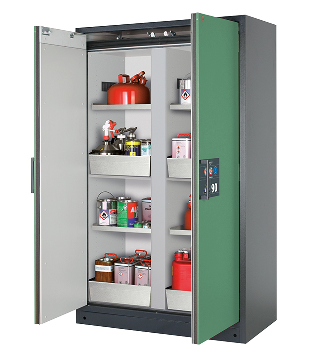 Bitte beachten Sie die jeweils gültigen, nationalen Regeln und Vorschriften zur Lagerung von Gefahrstoffen bei der Konfiguration Ihres Produktes. Sollten Sie unsicher sein, helfen Ihnen die asecos Experten gerne weiter.