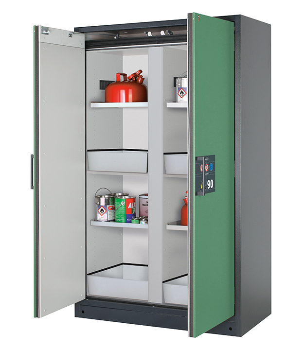 Bitte beachten Sie die jeweils gültigen, nationalen Regeln und Vorschriften zur Lagerung von Gefahrstoffen bei der Konfiguration Ihres Produktes. Sollten Sie unsicher sein, helfen Ihnen die asecos Experten gerne weiter.