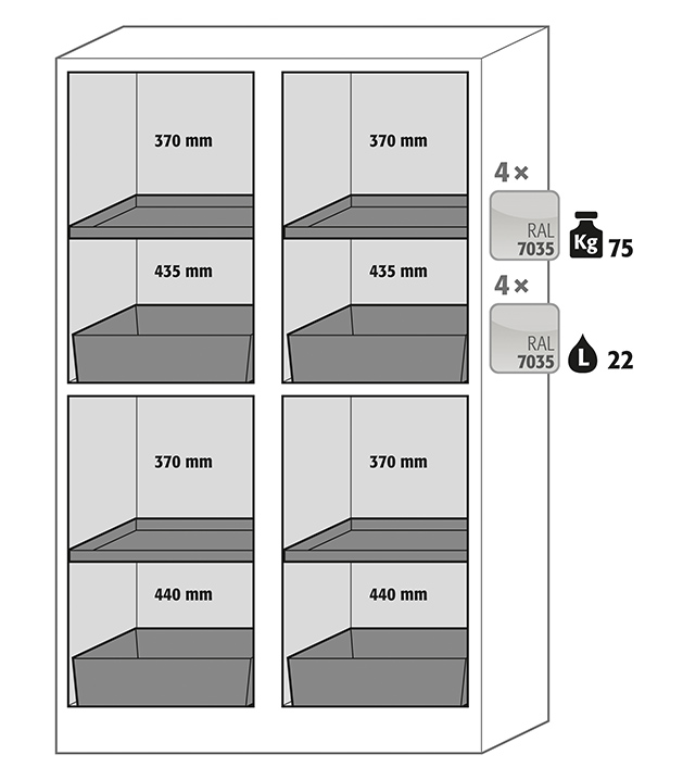 - Alles in einem: verschiedene Abteile (mehrfache Teilung) erlauben die Lagerung unterschiedlicher Gefahrstoffe in einem Schrank