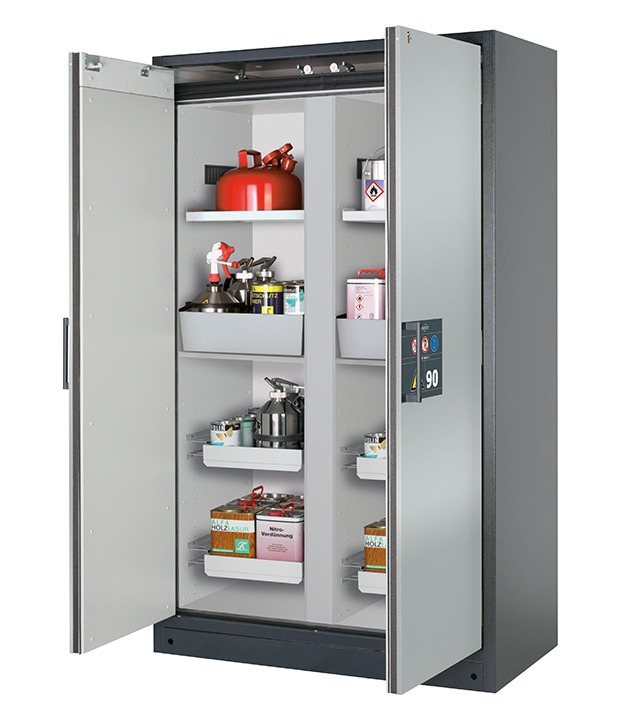 Bitte beachten Sie die jeweils gültigen, nationalen Regeln und Vorschriften zur Lagerung von Gefahrstoffen bei der Konfiguration Ihres Produktes. Sollten Sie unsicher sein, helfen Ihnen die asecos Experten gerne weiter.