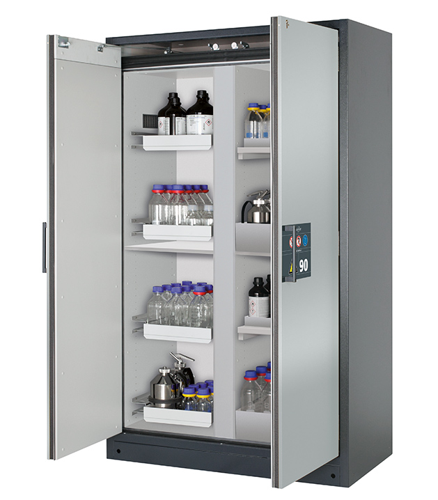 Bitte beachten Sie die jeweils gültigen, nationalen Regeln und Vorschriften zur Lagerung von Gefahrstoffen bei der Konfiguration Ihres Produktes. Sollten Sie unsicher sein, helfen Ihnen die asecos Experten gerne weiter.
