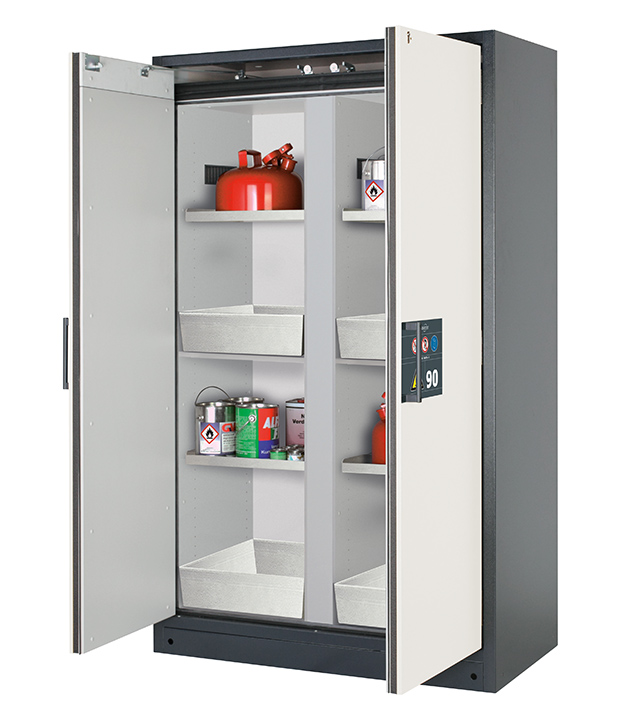 Bitte beachten Sie die jeweils gültigen, nationalen Regeln und Vorschriften zur Lagerung von Gefahrstoffen bei der Konfiguration Ihres Produktes. Sollten Sie unsicher sein, helfen Ihnen die asecos Experten gerne weiter.