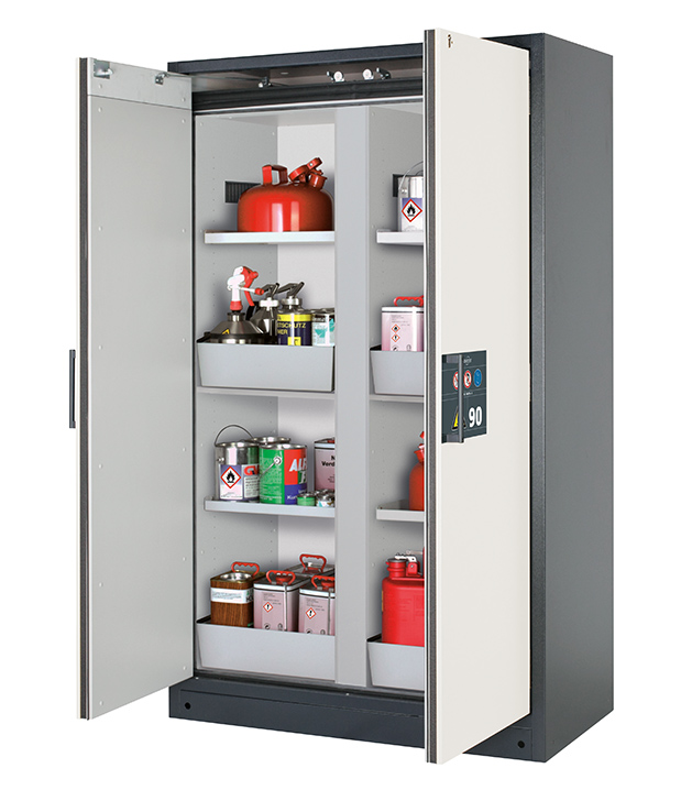 Bitte beachten Sie die jeweils gültigen, nationalen Regeln und Vorschriften zur Lagerung von Gefahrstoffen bei der Konfiguration Ihres Produktes. Sollten Sie unsicher sein, helfen Ihnen die asecos Experten gerne weiter.