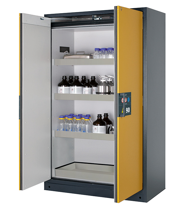 Bitte beachten Sie die jeweils gültigen, nationalen Regeln und Vorschriften zur Lagerung von Gefahrstoffen bei der Konfiguration Ihres Produktes. Sollten Sie unsicher sein, helfen Ihnen die asecos Experten gerne weiter.