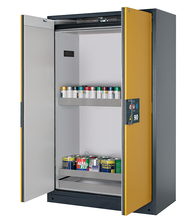 Bitte beachten Sie die jeweils gültigen, nationalen Regeln und Vorschriften zur Lagerung von Gefahrstoffen bei der Konfiguration Ihres Produktes. Sollten Sie unsicher sein, helfen Ihnen die asecos Experten gerne weiter.