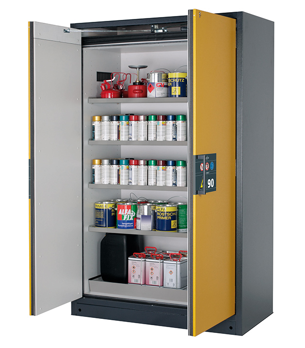 Bitte beachten Sie die jeweils gültigen, nationalen Regeln und Vorschriften zur Lagerung von Gefahrstoffen bei der Konfiguration Ihres Produktes. Sollten Sie unsicher sein, helfen Ihnen die asecos Experten gerne weiter.