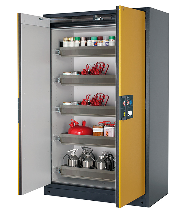 Bitte beachten Sie die jeweils gültigen, nationalen Regeln und Vorschriften zur Lagerung von Gefahrstoffen bei der Konfiguration Ihres Produktes. Sollten Sie unsicher sein, helfen Ihnen die asecos Experten gerne weiter.