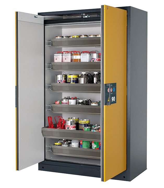 Bitte beachten Sie die jeweils gültigen, nationalen Regeln und Vorschriften zur Lagerung von Gefahrstoffen bei der Konfiguration Ihres Produktes. Sollten Sie unsicher sein, helfen Ihnen die asecos Experten gerne weiter.