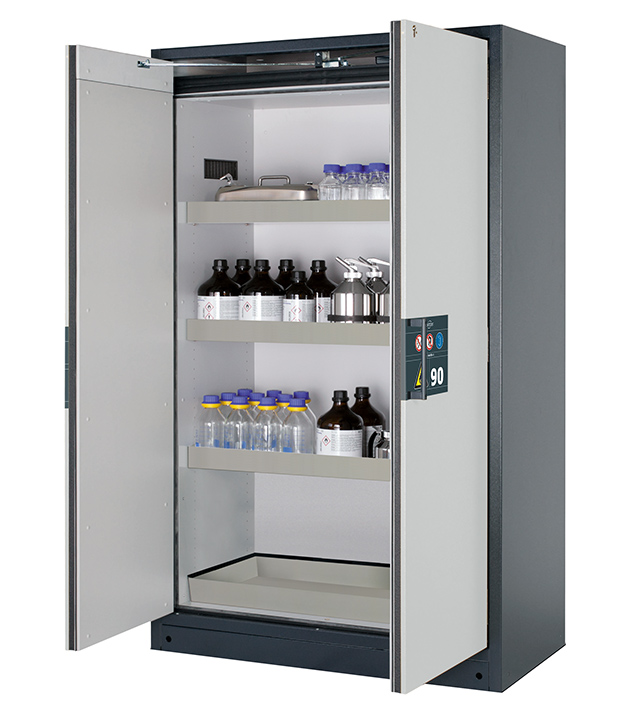 Bitte beachten Sie die jeweils gültigen, nationalen Regeln und Vorschriften zur Lagerung von Gefahrstoffen bei der Konfiguration Ihres Produktes. Sollten Sie unsicher sein, helfen Ihnen die asecos Experten gerne weiter.