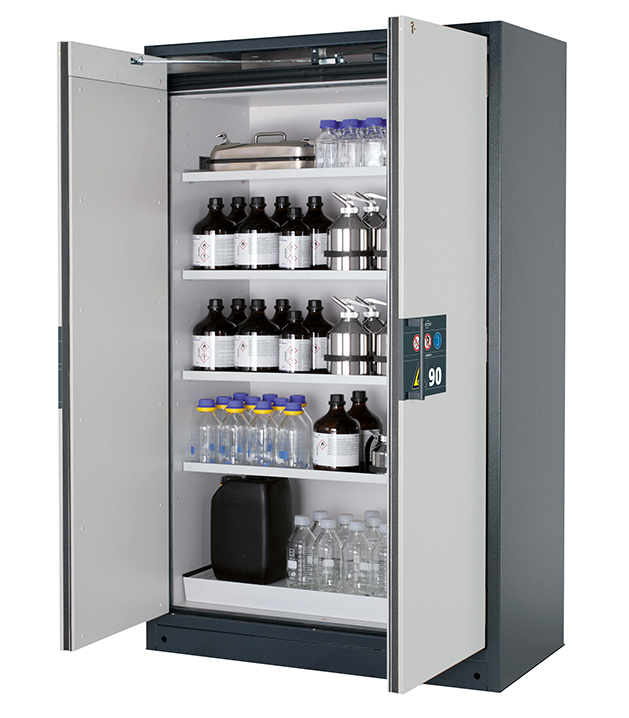 Bitte beachten Sie die jeweils gültigen, nationalen Regeln und Vorschriften zur Lagerung von Gefahrstoffen bei der Konfiguration Ihres Produktes. Sollten Sie unsicher sein, helfen Ihnen die asecos Experten gerne weiter.