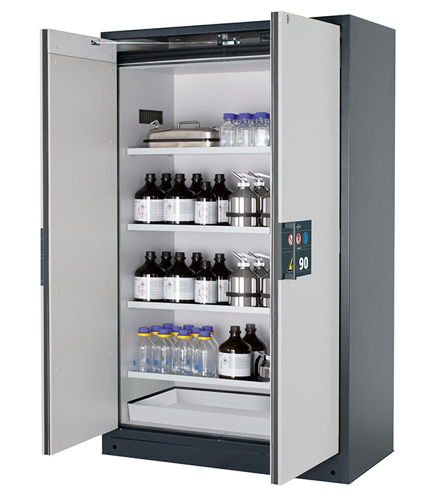 Bitte beachten Sie die jeweils gültigen, nationalen Regeln und Vorschriften zur Lagerung von Gefahrstoffen bei der Konfiguration Ihres Produktes. Sollten Sie unsicher sein, helfen Ihnen die asecos Experten gerne weiter.