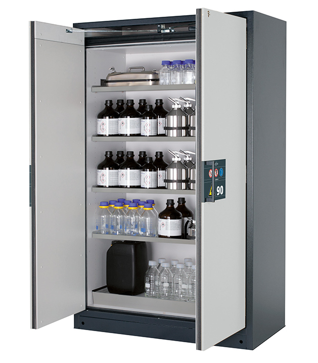 Bitte beachten Sie die jeweils gültigen, nationalen Regeln und Vorschriften zur Lagerung von Gefahrstoffen bei der Konfiguration Ihres Produktes. Sollten Sie unsicher sein, helfen Ihnen die asecos Experten gerne weiter.