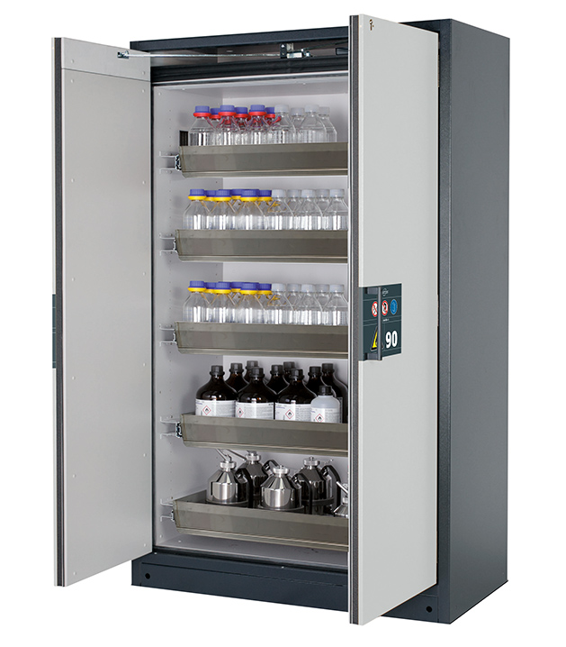 Bitte beachten Sie die jeweils gültigen, nationalen Regeln und Vorschriften zur Lagerung von Gefahrstoffen bei der Konfiguration Ihres Produktes. Sollten Sie unsicher sein, helfen Ihnen die asecos Experten gerne weiter.