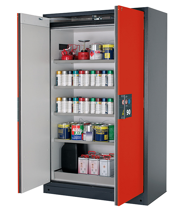 Bitte beachten Sie die jeweils gültigen, nationalen Regeln und Vorschriften zur Lagerung von Gefahrstoffen bei der Konfiguration Ihres Produktes. Sollten Sie unsicher sein, helfen Ihnen die asecos Experten gerne weiter.