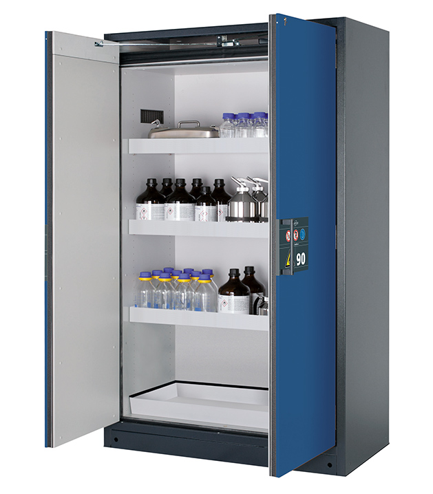 Bitte beachten Sie die jeweils gültigen, nationalen Regeln und Vorschriften zur Lagerung von Gefahrstoffen bei der Konfiguration Ihres Produktes. Sollten Sie unsicher sein, helfen Ihnen die asecos Experten gerne weiter.