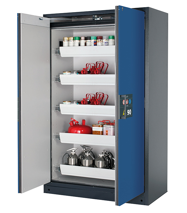 Bitte beachten Sie die jeweils gültigen, nationalen Regeln und Vorschriften zur Lagerung von Gefahrstoffen bei der Konfiguration Ihres Produktes. Sollten Sie unsicher sein, helfen Ihnen die asecos Experten gerne weiter.