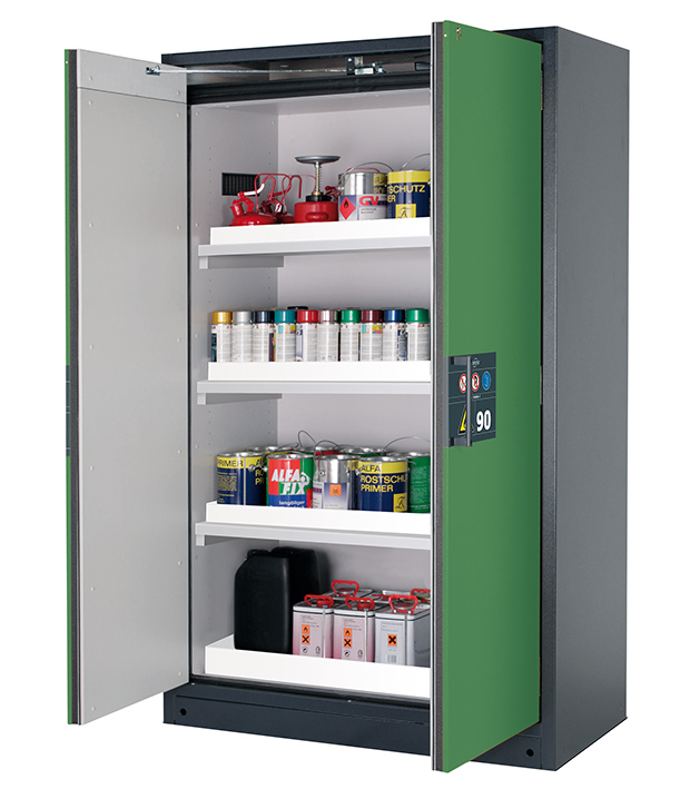 Bitte beachten Sie die jeweils gültigen, nationalen Regeln und Vorschriften zur Lagerung von Gefahrstoffen bei der Konfiguration Ihres Produktes. Sollten Sie unsicher sein, helfen Ihnen die asecos Experten gerne weiter.