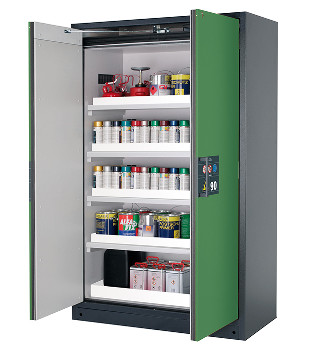 Bitte beachten Sie die jeweils gültigen, nationalen Regeln und Vorschriften zur Lagerung von Gefahrstoffen bei der Konfiguration Ihres Produktes. Sollten Sie unsicher sein, helfen Ihnen die asecos Experten gerne weiter.
