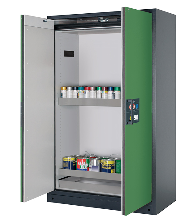 Bitte beachten Sie die jeweils gültigen, nationalen Regeln und Vorschriften zur Lagerung von Gefahrstoffen bei der Konfiguration Ihres Produktes. Sollten Sie unsicher sein, helfen Ihnen die asecos Experten gerne weiter.