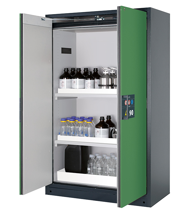 Bitte beachten Sie die jeweils gültigen, nationalen Regeln und Vorschriften zur Lagerung von Gefahrstoffen bei der Konfiguration Ihres Produktes. Sollten Sie unsicher sein, helfen Ihnen die asecos Experten gerne weiter.