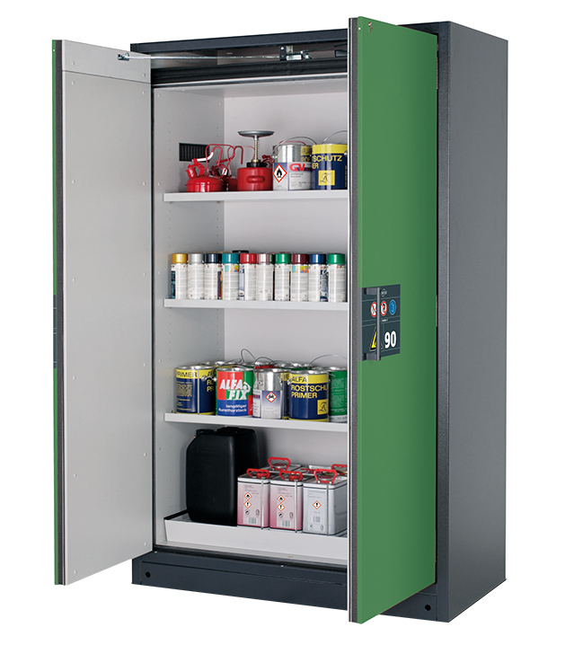Bitte beachten Sie die jeweils gültigen, nationalen Regeln und Vorschriften zur Lagerung von Gefahrstoffen bei der Konfiguration Ihres Produktes. Sollten Sie unsicher sein, helfen Ihnen die asecos Experten gerne weiter.
