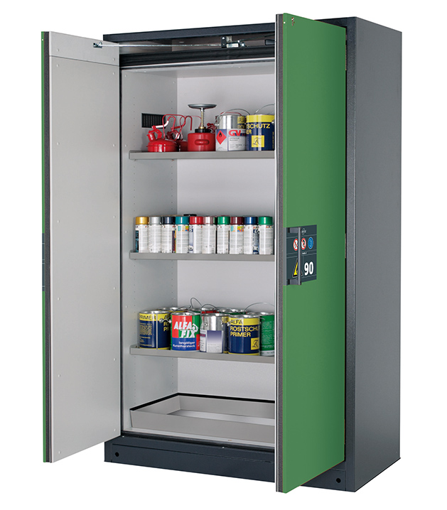 Bitte beachten Sie die jeweils gültigen, nationalen Regeln und Vorschriften zur Lagerung von Gefahrstoffen bei der Konfiguration Ihres Produktes. Sollten Sie unsicher sein, helfen Ihnen die asecos Experten gerne weiter.