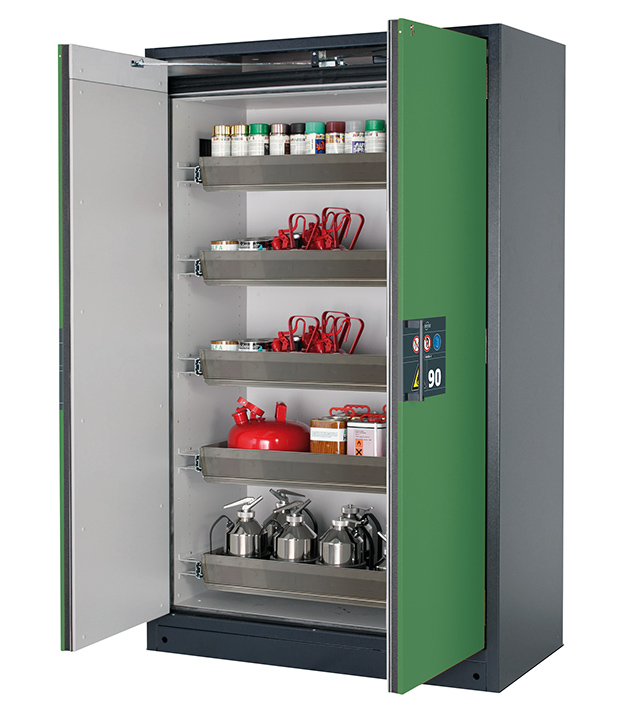 Bitte beachten Sie die jeweils gültigen, nationalen Regeln und Vorschriften zur Lagerung von Gefahrstoffen bei der Konfiguration Ihres Produktes. Sollten Sie unsicher sein, helfen Ihnen die asecos Experten gerne weiter.