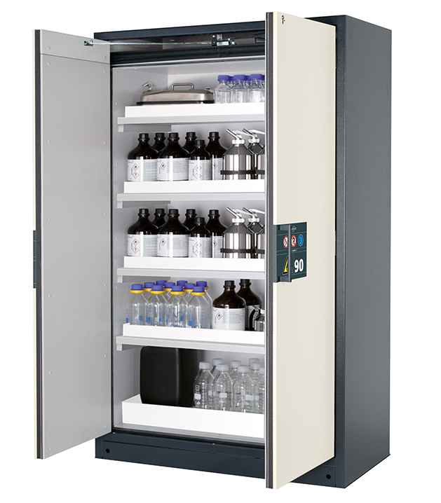Bitte beachten Sie die jeweils gültigen, nationalen Regeln und Vorschriften zur Lagerung von Gefahrstoffen bei der Konfiguration Ihres Produktes. Sollten Sie unsicher sein, helfen Ihnen die asecos Experten gerne weiter.