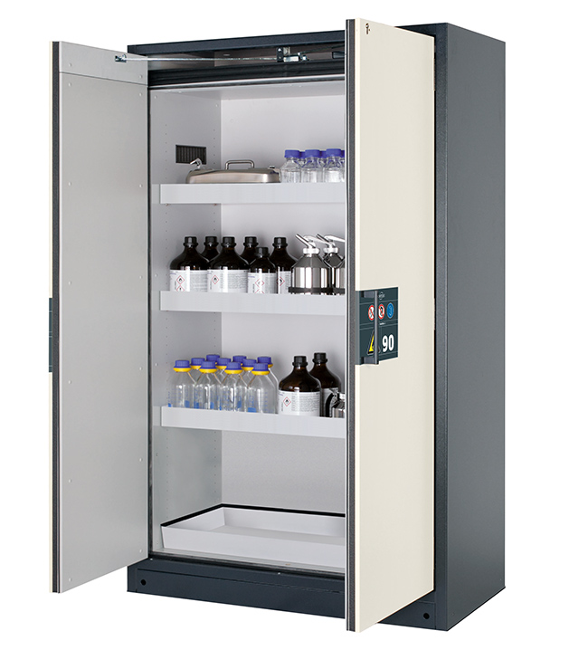 Bitte beachten Sie die jeweils gültigen, nationalen Regeln und Vorschriften zur Lagerung von Gefahrstoffen bei der Konfiguration Ihres Produktes. Sollten Sie unsicher sein, helfen Ihnen die asecos Experten gerne weiter.