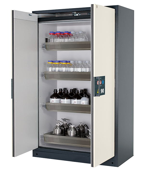 Bitte beachten Sie die jeweils gültigen, nationalen Regeln und Vorschriften zur Lagerung von Gefahrstoffen bei der Konfiguration Ihres Produktes. Sollten Sie unsicher sein, helfen Ihnen die asecos Experten gerne weiter.